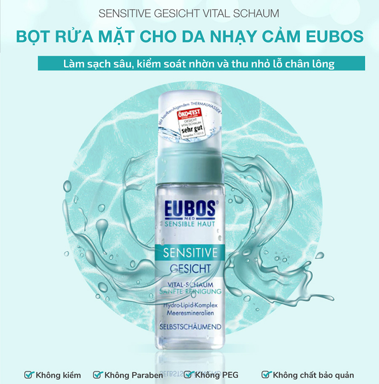 Khuyến khích các nàng sử dụng trọn bộ kem dưỡng ẩm EUBOS cùng với bọt rửa mặt cho da nhạy cảm EUBOS Sensitive Vital Schaum với các thành phần lành tính như rong sụn đỏ, muối biển, giúp làm sạch bụi bẩn, nước khoáng thiên nhiên từ dãy núi Pyrenees Pháp chứa nhiều canxi, magie, kẽm rất tốt phù hợp cho da mụn và da dầu...thu nhỏ lỗ chân lông. Sự kết hợp 2 sản phẩm này sẽ đẩy nhanh quá trình chăm sóc da một cách tốt hơn, giảm thiểu các trường hợp kích ứng da.